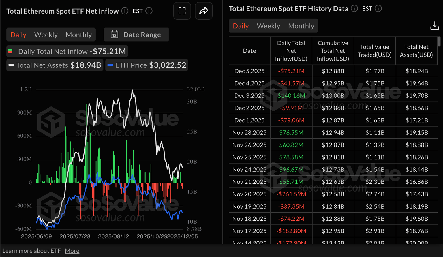 以太坊 ETF 数据统计 | 来源:SoSoValue