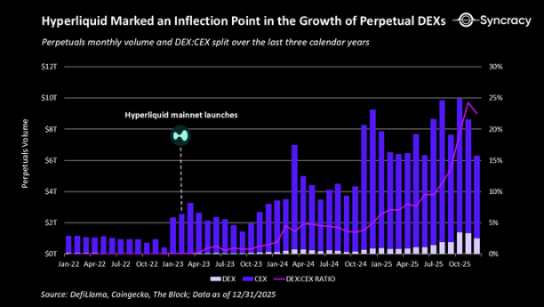 Hyperliquid 的出现标志着 DEX 与中心化交易所(CEX)竞争格局的一个清晰转折点。自其推出以来,DEX 以越来越快的速度从 CEX 手中夺取市场份额,如今性能和用户体验已不再是制约因素。如今,在主要加密资产的交易执行方面,Hyperliquid 和 Lighter 已跻身零售交易者的最佳选择之列。