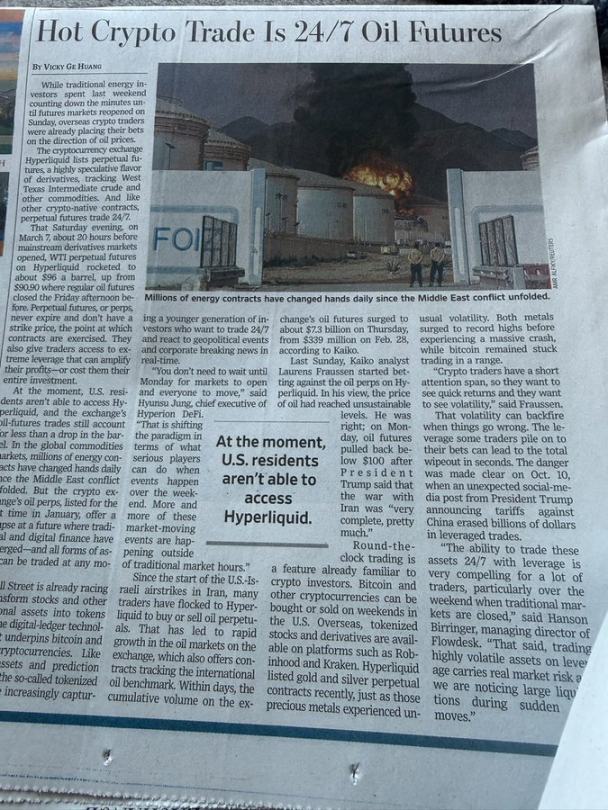 证据就在数据中。永续合约不仅在长期扩张的加密经济中作为主导衍生工具拥有清晰的增长前景,它们还具有相对于期权和期货的明显优势,这将使它们能够从传统资产类别中吸收更大份额的零售需求。在永续合约「现实世界资产」扩张的最初几个月,它们已经开始影响全球金融市场,最近一次是在伊朗冲突期间充当周末石油的价格发现引擎。我们相信,随着时间的推移,永续合约的首要地位只会变得更加明显。