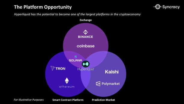 最后,随着去中心化交易所引领永续合约的增长,我们相信它们也将扩展到邻近的类别。永续合约是区块链上最难做好的产品,一旦一个区块链能够成功地承载它们,它自然会作为副产品开始聚合其他加密用例。我们已经看到了早期证据,Hyperliquid 扩展到现货交易和稳定币,很快还将扩展到预测市场和期权。正是在这个意义上,永续合约 DEX 也是未来金融平台的特洛伊木马。